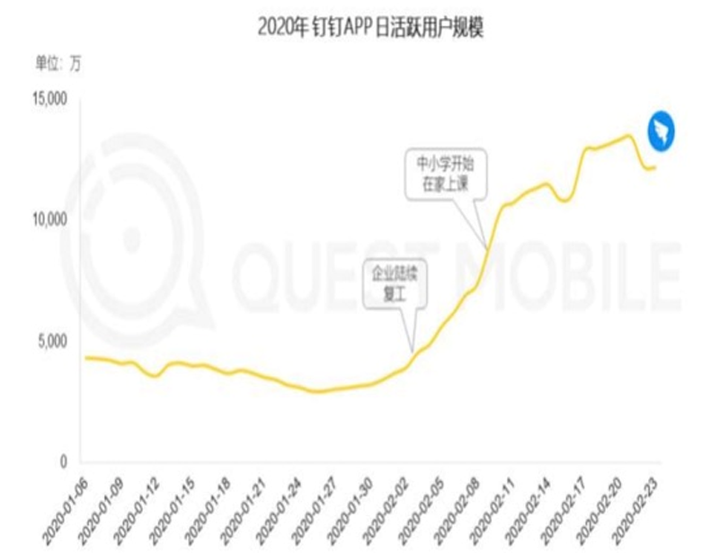 Trustdata 數(shù)據(jù)顯示:2020 年1月1日至2月21日,釘釘日活躍用戶從 2610萬(wàn)升至1.5億,無(wú)疑成為這次疫情中單個(gè)產(chǎn)品增長(zhǎng)最讓人印象深刻的產(chǎn)品。
